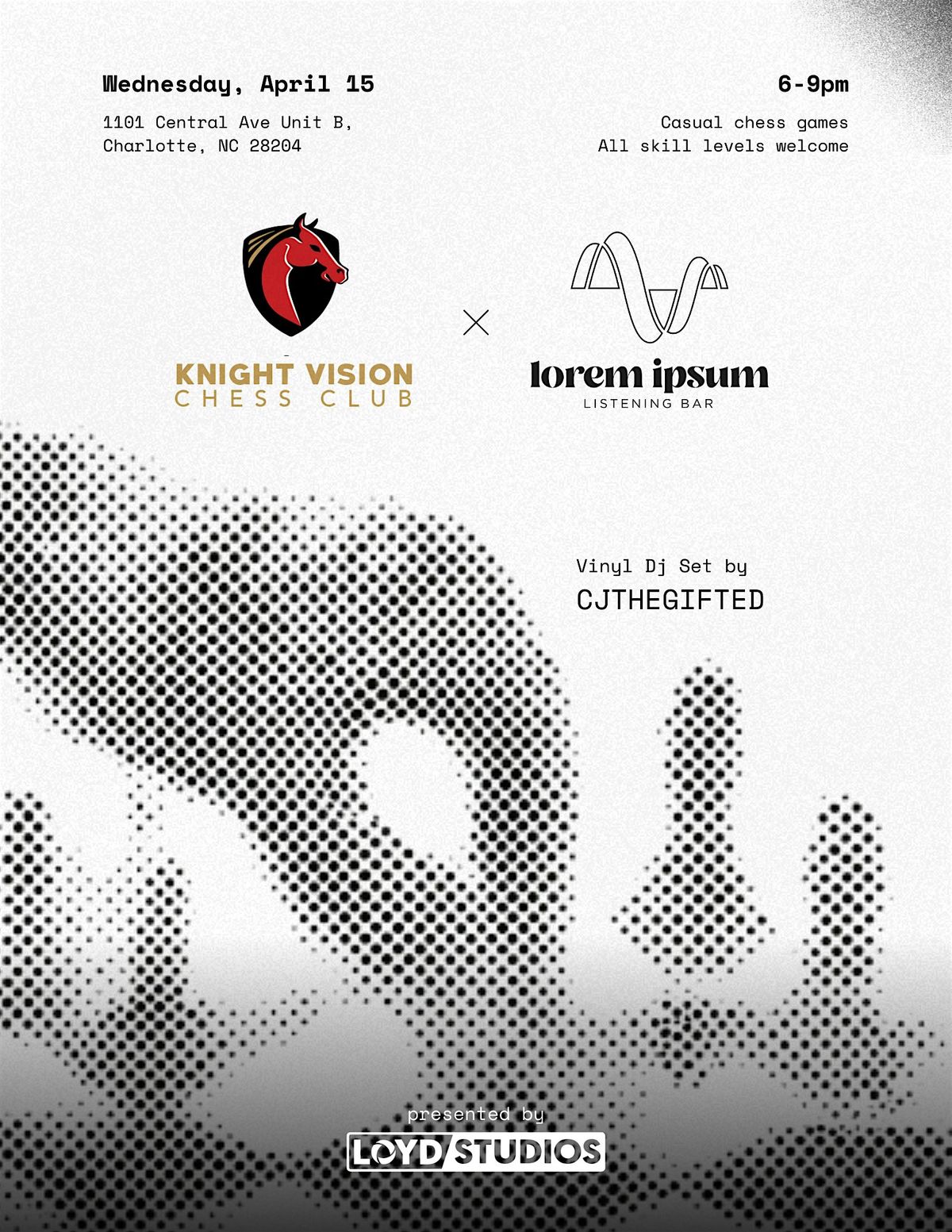 Welcome to Knight Vision Chess Club, where strategic minds converge and chess enthusiasts unite! ๐ฐ๐ Sharpen your intellect and immerse yourself in the world of checkmates and endgames with our community. Whether you're a seasoned player or just starting your journey on the 64 squares, Knight Vision Chess Club is the perfect place to foster your passion for the game. Join us for exciting matches, insightful discussions, and a supportive environment that celebrates the timeless allure of chess. This event will be at Lorem Ipsum Listening Bar.