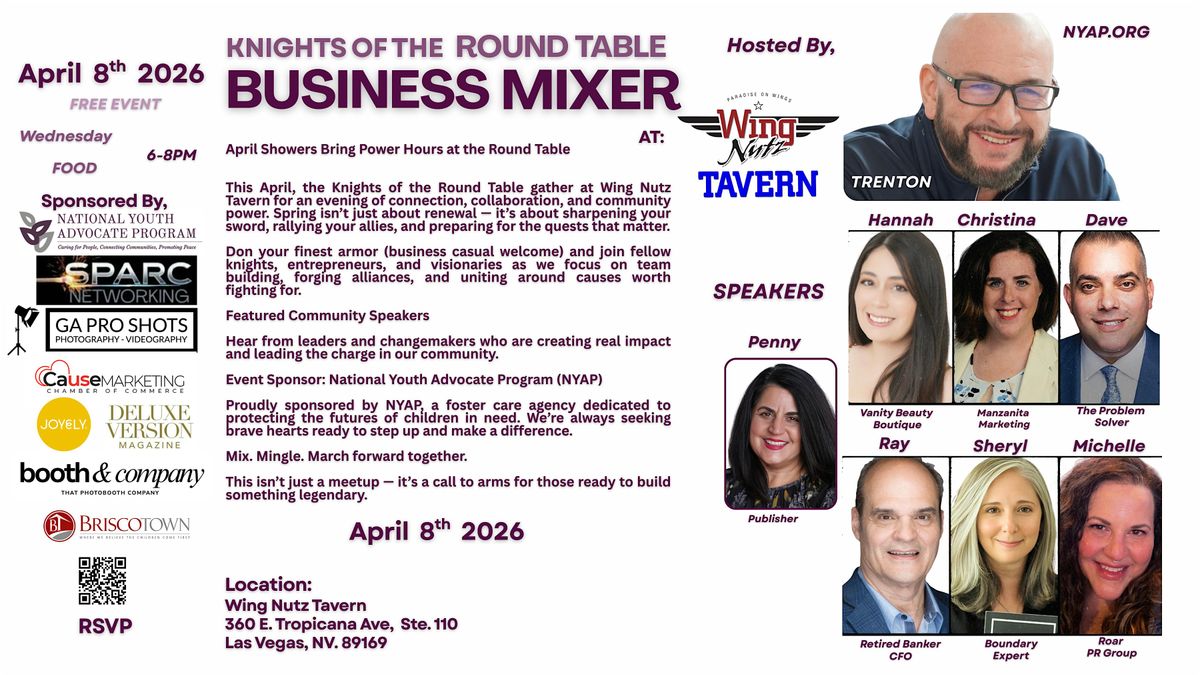 This April, the Knights of the Round Table gather at Wing Nutz Tavern for an evening of connection, collaboration, and community power.
