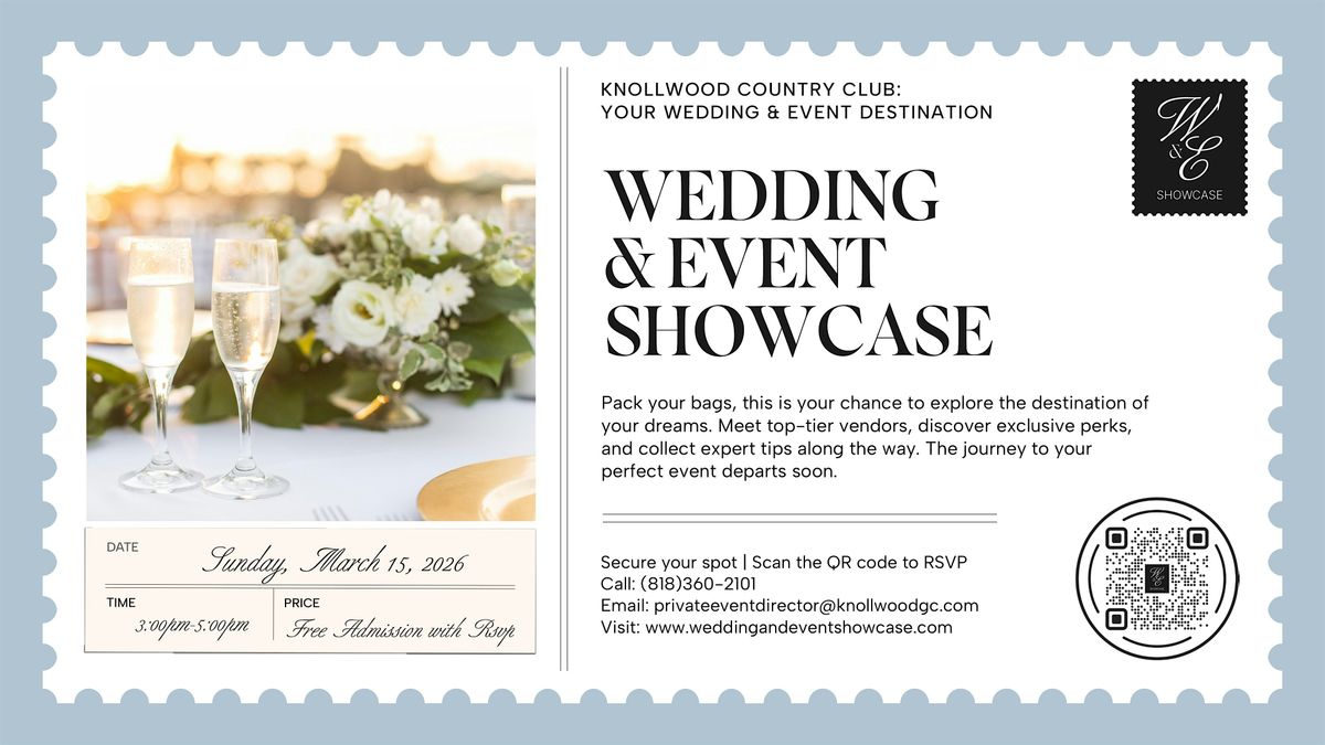 Join us for the 2026 Wedding & Event Showcase at Knollwood Country Club on March 16th from 3–5 PM! Sip, mingle, and explore as we introduce you to our amazing preferred vendors! Everything, from florals and photography to décor, music, sweet treats, and more.