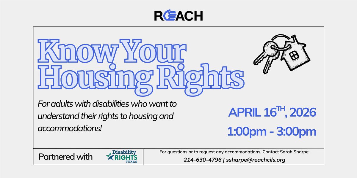 Hey there! Join us in person for Know Your Housing Rights, For adults with disabilities who want to understand their rights to housing and accommodations! Don’t miss out on this chance to get confident about your housing situation!