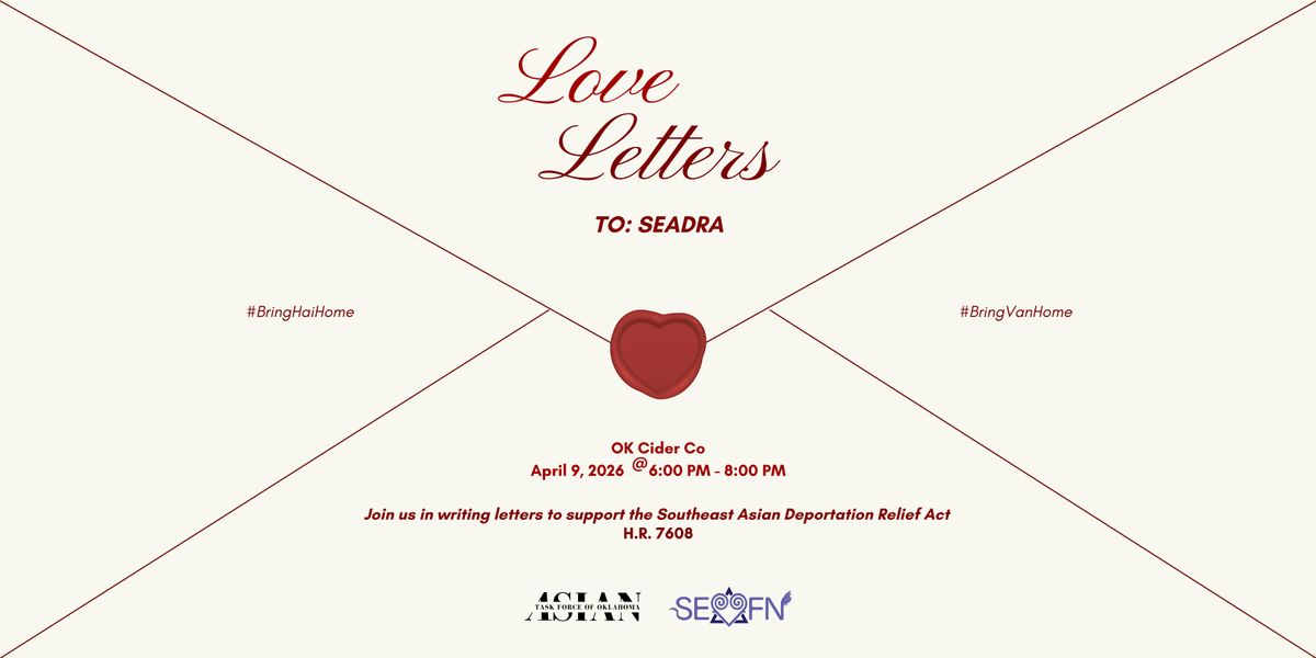 Join us for an evening of community, storytelling, and action as we come together to write letters in support of the Southeast Asian Deportation Relief Act (SEADRA), H.R. 7608.