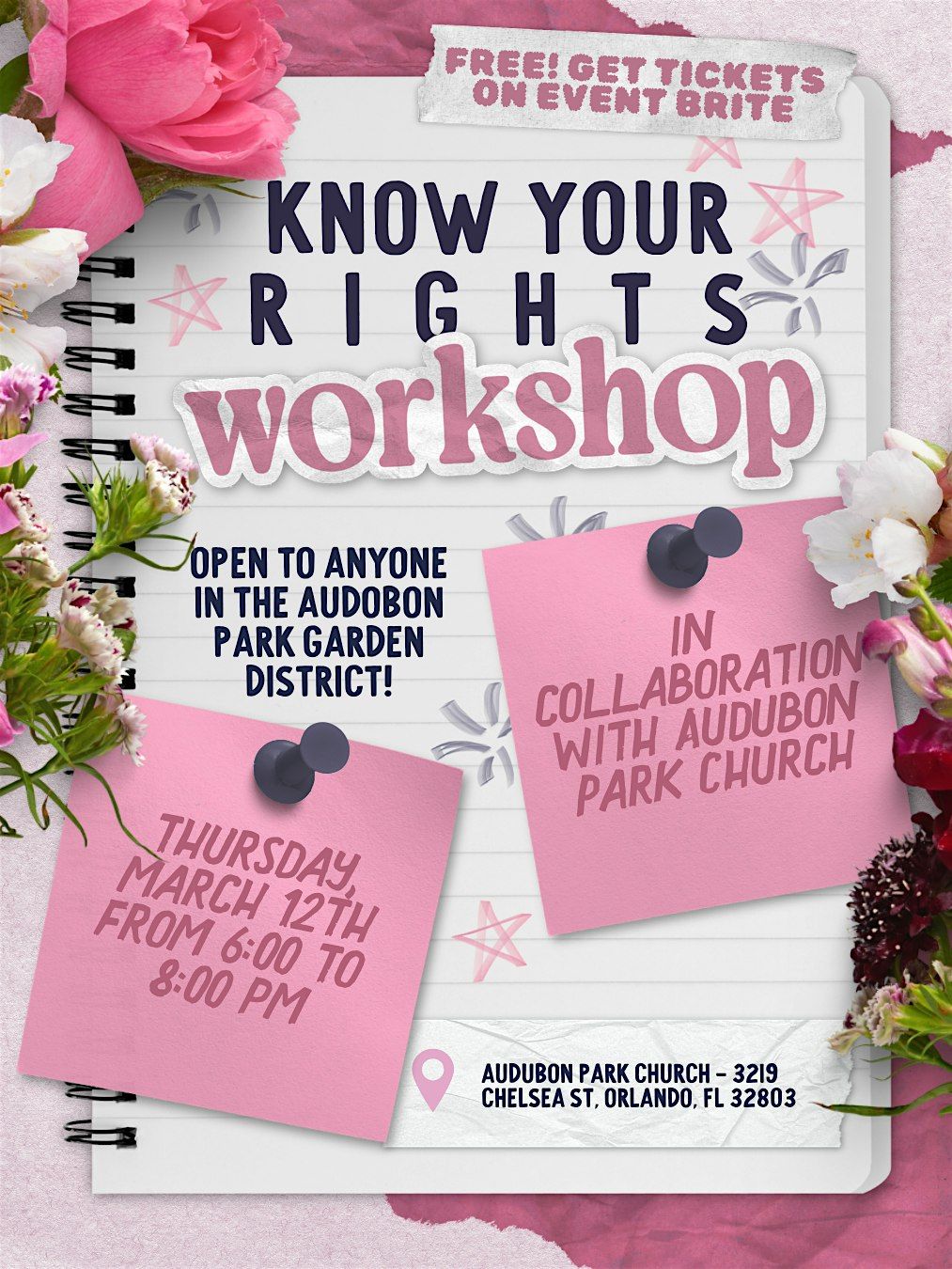 Join us for a Know Our Rights Workshop in collaboration with Audubon Park Convenant Church from 6-8pm, where we will discuss what your rights are, how to use them, and what to do when your rights are violated.