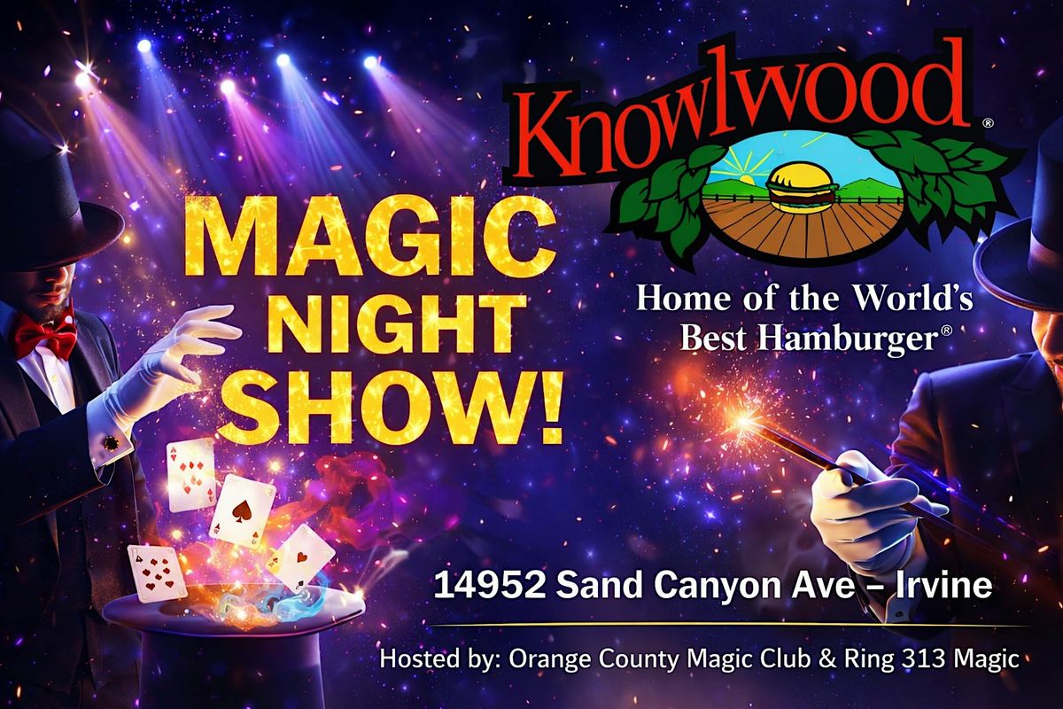 Join us at Knowlwood Restaurant for a special Magic Night Show hosted by the Orange County Magic Club and Ring 313 Magic Club. Experience live close-up magic, stage performances, sleight-of-hand, and surprises that will leave you amazed.