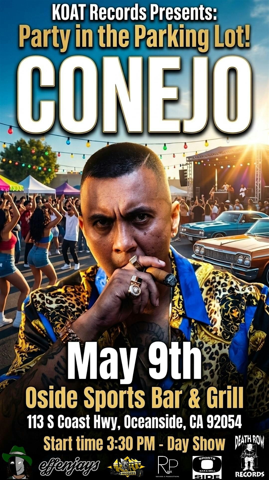 Join Koat Records for an exclusive outdoor experience as they transform the parking lot of Oside Sports Bar & Grill into a massive day party on May 9th. This high-energy event features a headline performance by West Coast legend Conejo, bringing raw energy and real street music to the heart of Oceanside.