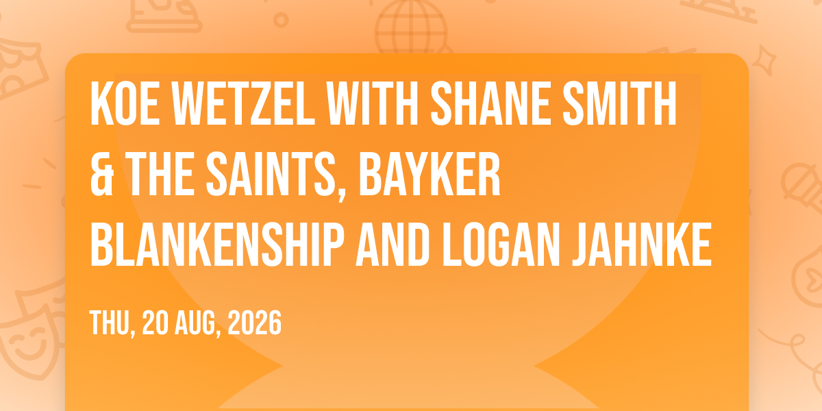 π Location: 38.8801, -77.0261β¨ Embark on an extraordinary journey at Koe Wetzel with Shane Smith & The Saints, Bayker Blankenship and Logan Jahnke, where every moment promises to be unforgettable! π Imagine of transforming The Anthem - DC in the heart of Washington, DC into a realm of endless possibilities. π Join us on August 20th, 2026 at 10:45 PM for an experience that will challenge your imagination and exceed your expectations. π― This carefully curated event combines the finest elements of entertainment, innovation, and community spirit. Whether you're an adventure seeker, culture enthusiast, or someone looking for unique experiences, this event offers something special for everyone. π Don't miss this chance to be part of something extraordinary!