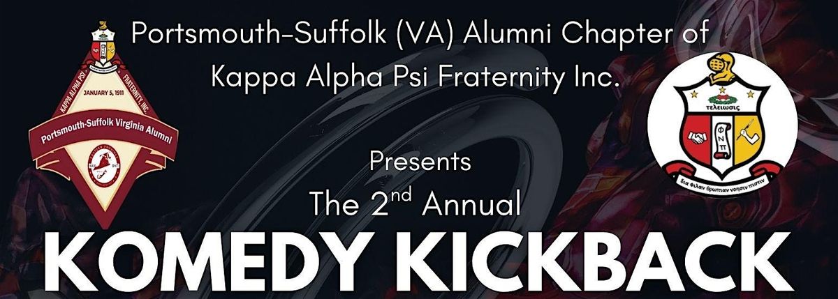 Portsmouth-Suffolk (VA) Alumni Chapter of Kappa Alpha Psi Fraternity Inc. brings to you their second annual Komedy Kick-back. With some of the best comedians from Hampton Roads, this comedy show will have you laughing all night. It's certainly one night that you won't want to miss, so tell a friend to bring a friend and enjoy a great night of great fun. This event is in support of the fraternity's Kappa League, youth mentoring group, and annual scholarship fund raiser.