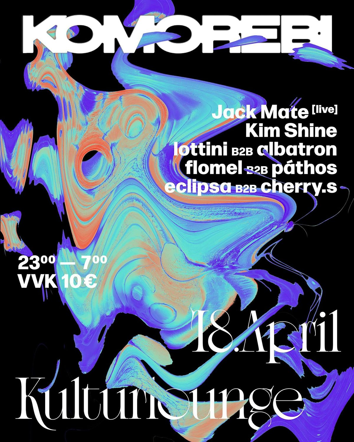 Leipzig rapper Jack Mate opens the night with a live performance, followed by Kim Shine, the winner of our Open Call, bringing breaks and garage to the floor. Lottini goes b2b with French DJ albatron playing Psy, before flomel teams up with páthos from Berlin to dive deeper into Scanditrance. For the finale, our all-stars cherry.s b2b eclipsa deliver bounce, psytrance and high energy until the last beat.