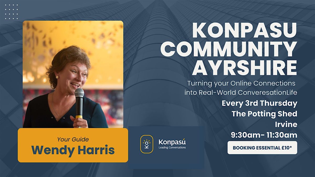 About Konpasu CommunityKonpasu Community is a growing network of conversation-led business gatherings across Ayrshire, Glasgow and Edinburgh, bringing online connections into real-world conversation.