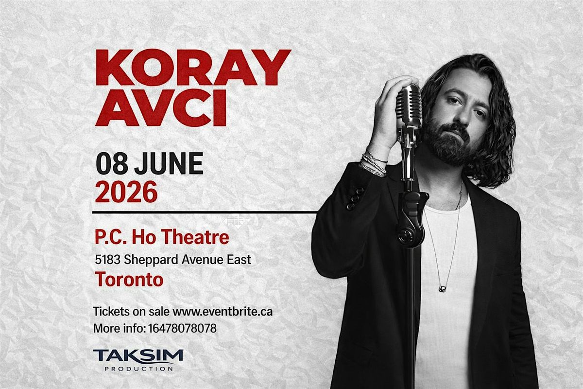 Türkiye’nin sevilen sanatçılarından Koray Avcı, güçlü sesi, duygusal yorumu ve sevilen şarkılarıyla Toronto’da müzikseverlerle buluşuyor..........