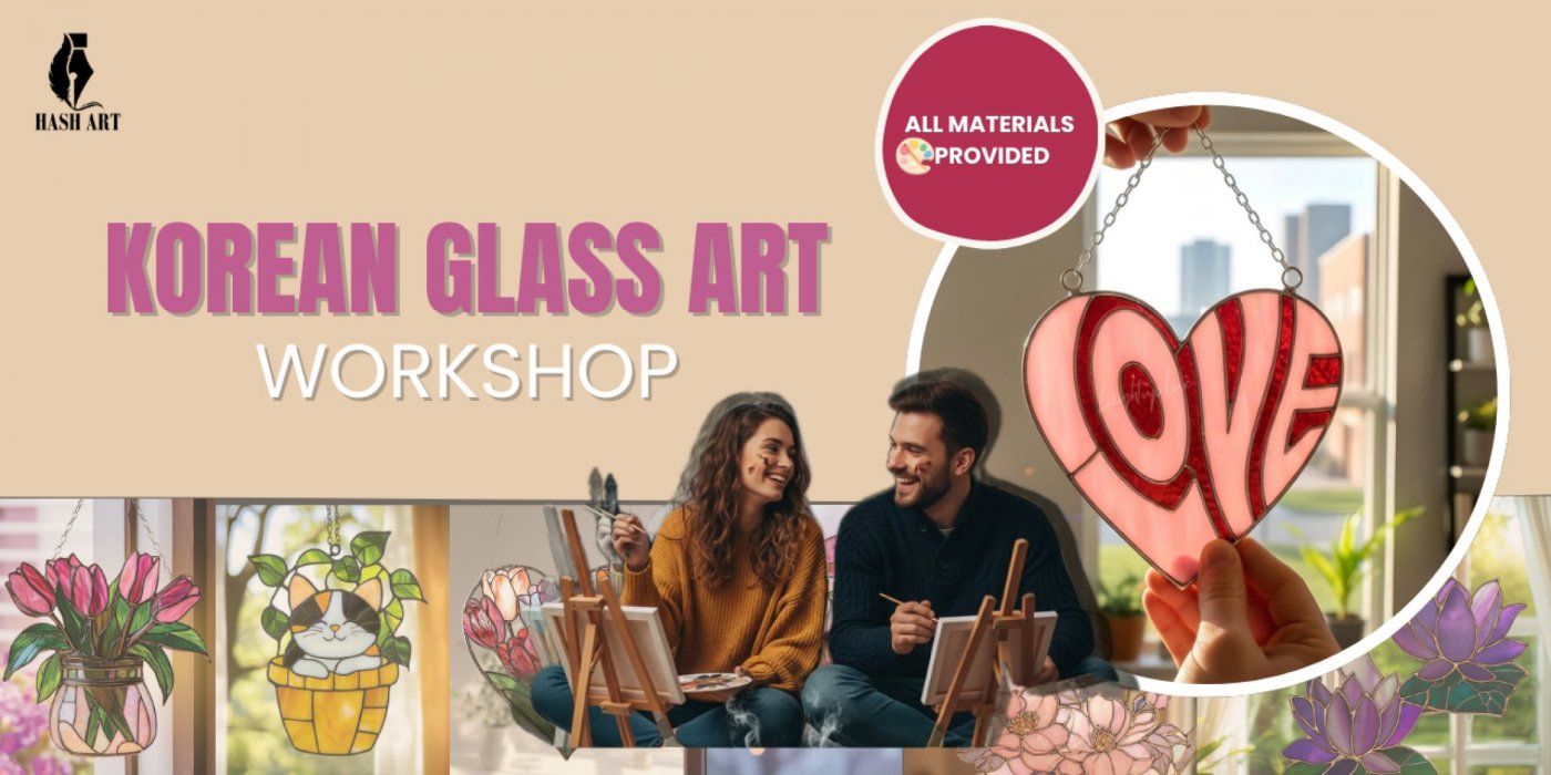 Join HashArt for an immersive Korean Glass Art Workshop, where you’ll explore the art of creating delicate, translucent designs inspired by Korean aesthetics. Learn to mix glossy paints, outline intricate floral and geometric patterns, and craft artworks that glow like stained glass.