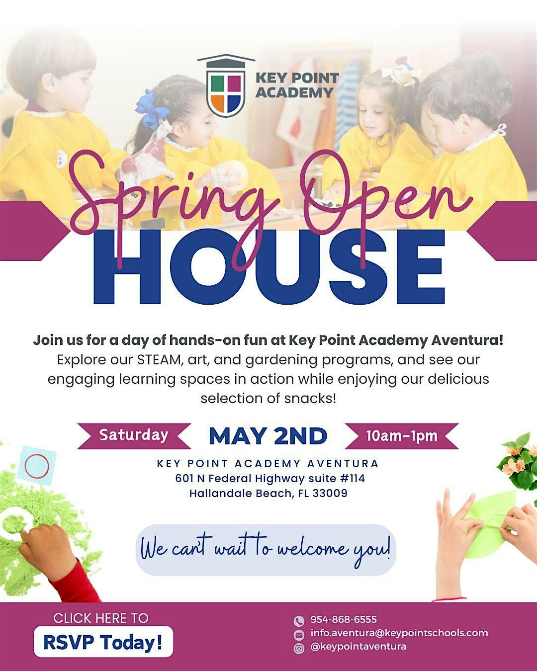 Come join us in person for a fun and exciting day at the KPA Aventura Spring Open House! Enjoy hands-on activities in STEAM, art, and gardening, explore our engaging learning spaces in action, meet our dedicated staff, and savor a selection of snacks while taking part in special activities throughout your visit.
