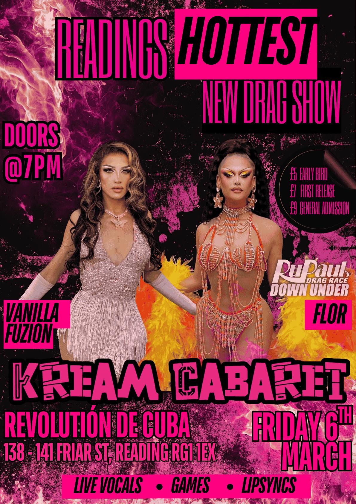 Reading’s hottest new drag show has arrived!Get ready for a night of pure drag excellence at Kream Cabaret, bringing high-energy performances, fierce fashion, and unapologetic glamour to Reading Biscuit Factory.