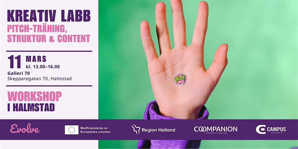 Workshopen är kostnadsfri och en del av projektet EVOLVE som medfinansieras av Europeiska Unionen och Region Halland. Du som deltar kommer att rapportera din tid i ett enkelt digitalt formulär i samband med träffen.