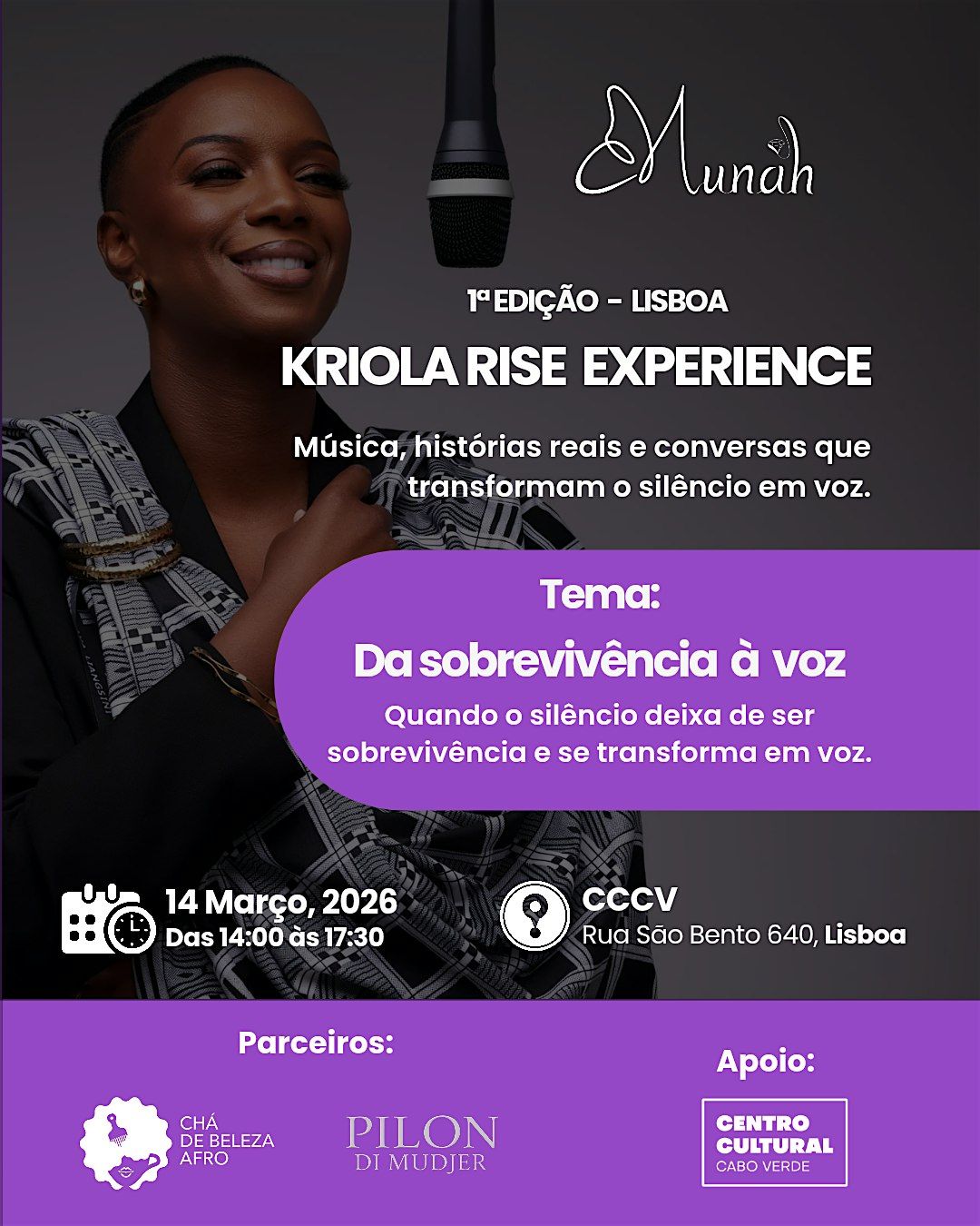 O Kriola Rise Experience nasce como um novo espaço de encontro. Música, histórias reais e conversas que transformam o silêncio em voz, onde presença, reflexão e transformação se encontram.