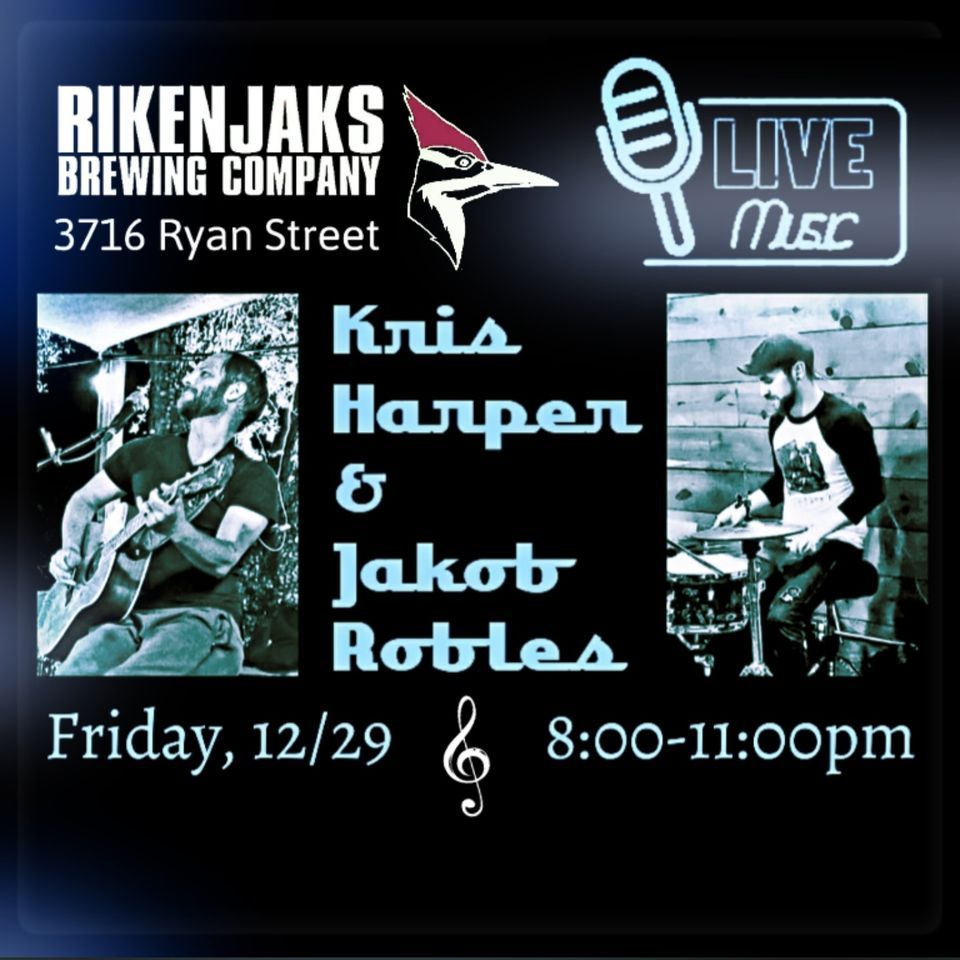 Dec. 29th will be your last chance this year to kick off your weekend at Rikenjaks on Ryan. We've made it special with live tunes from Kris Harper & Jakob Robles starting at 8 this Friday night. All ages welcome. No cover.