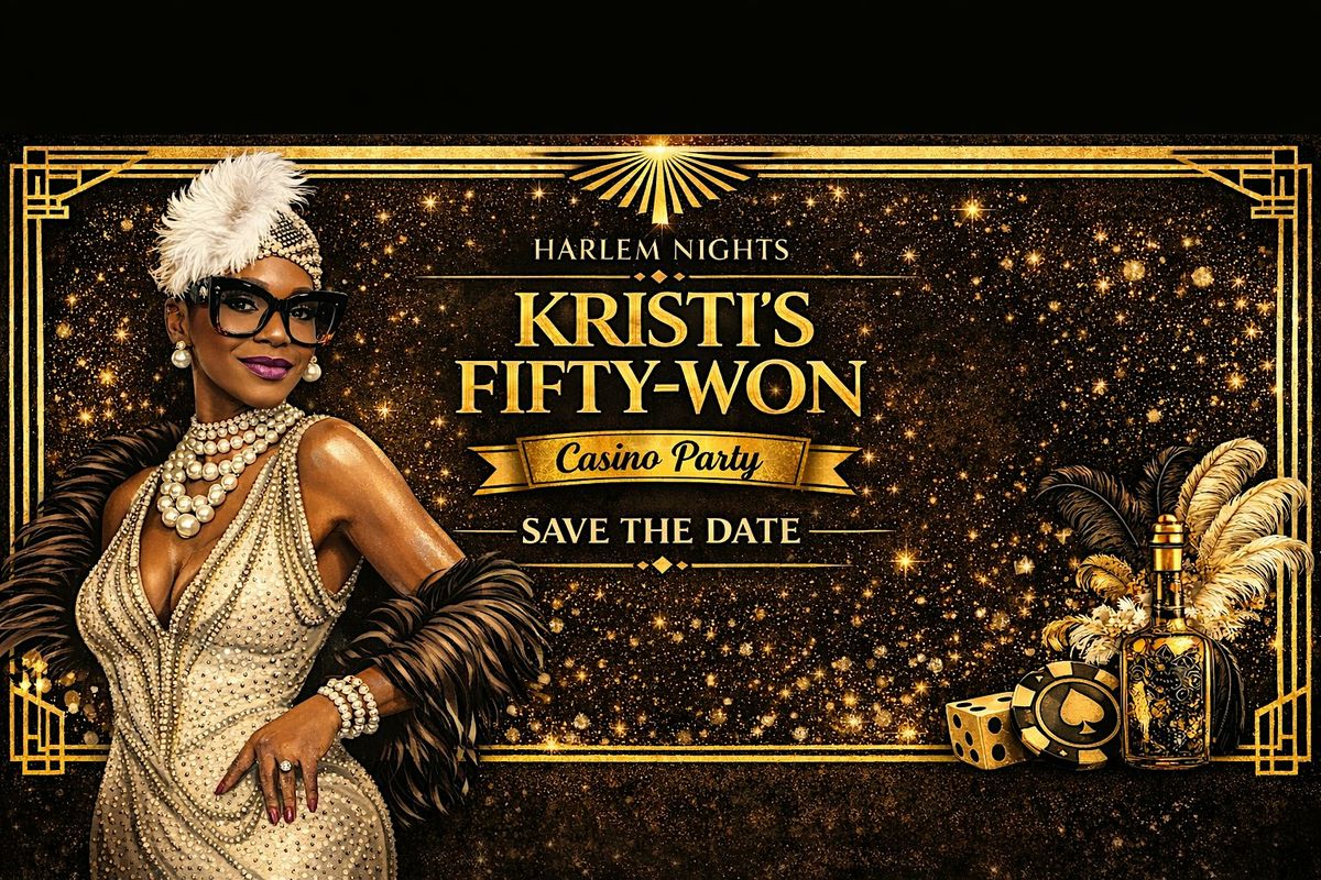 Celebrate 51 Fabulous Years with Kristi!Step into the glamour, rhythm, and elegance of the Harlem Renaissance as we celebrate a milestone in unforgettable style…Kristi’s Fifty-Won: Harlem Nights Casino PartyGet ready for a night filled with:
