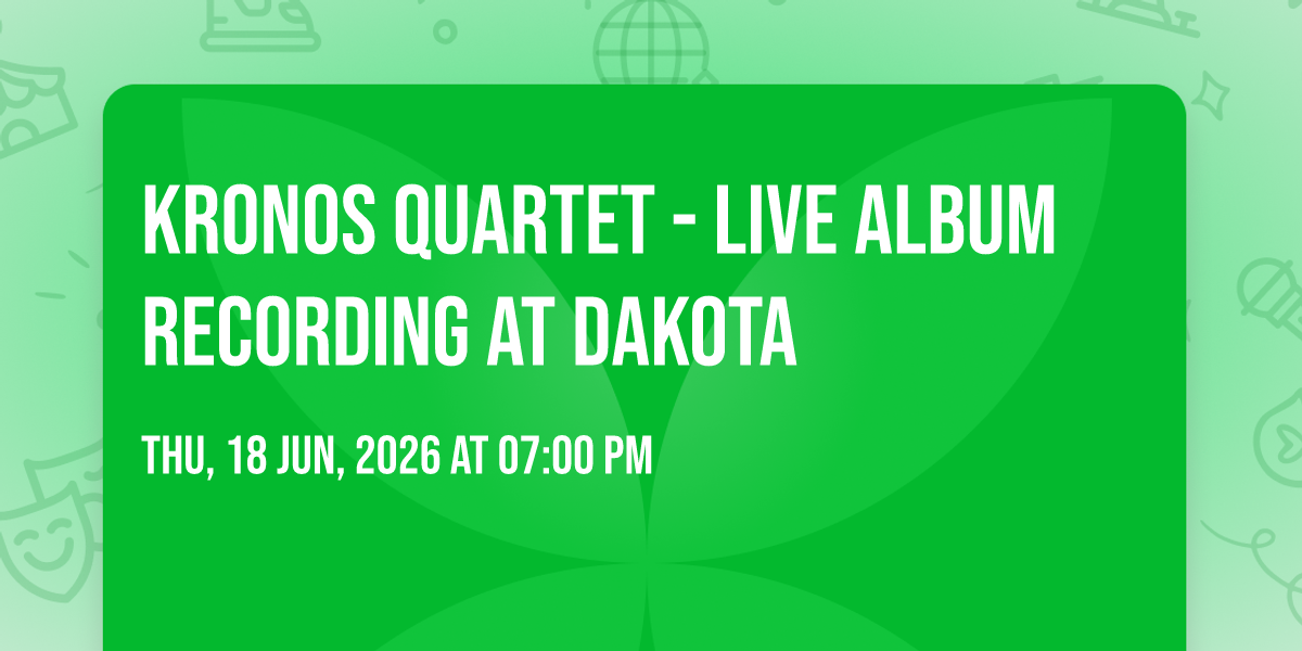✨ Embark on an extraordinary journey at Kronos Quartet - Live Album Recording at Dakota, where every moment promises to be unforgettable! 🌟 Imagine of transforming Dakota in the heart of Minneapolis, MN into a realm of endless possibilities. 📅 Join us on June 18th, 2026 at 09:30 PM for an experience that will challenge your imagination and exceed your expectations. 🎯 This carefully curated event combines the finest elements of entertainment, innovation, and community spirit. Whether you're an adventure seeker, culture enthusiast, or someone looking for unique experiences, this event offers something special for everyone. 🎊 Don't miss this chance to be part of something extraordinary!