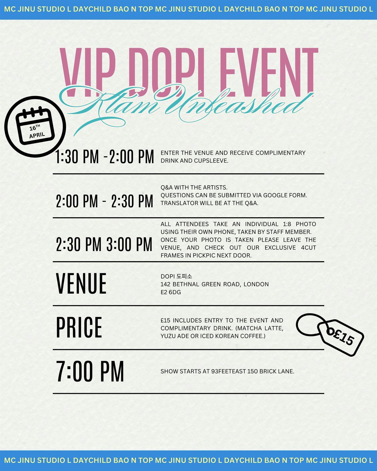 This is a very limited, small-scale, event, with the kpop artists from the KTAM UNLEASHED shows. This event is round the corner from the venue of our first show.
