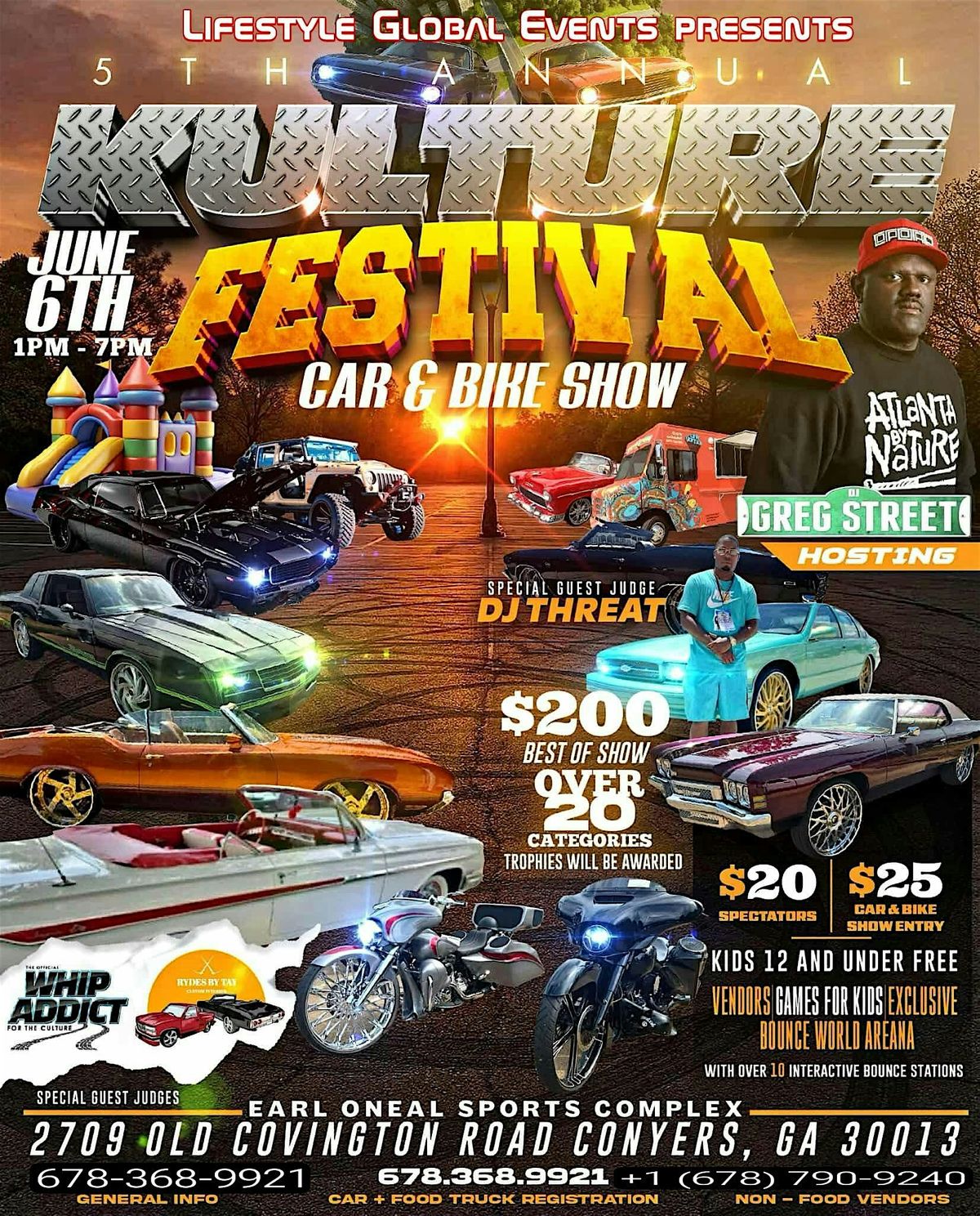 June 6th The 5th Annual Kulture festival is coming, featuring an impressive car and bike show. From 1pm to 7pm Hosted by DJ Greg Street