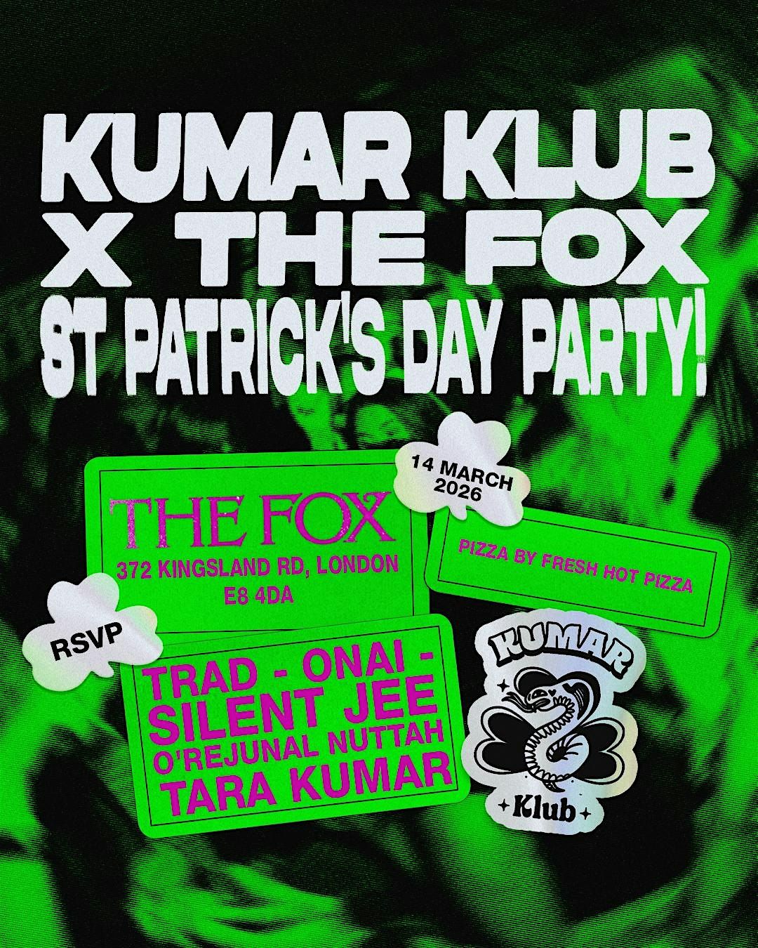 Kumar Klub’s annual St Patrick’s Day party is back and linking up with The Fox, Hackney for a big celebration of trad, DJ’s, pints and pizza.