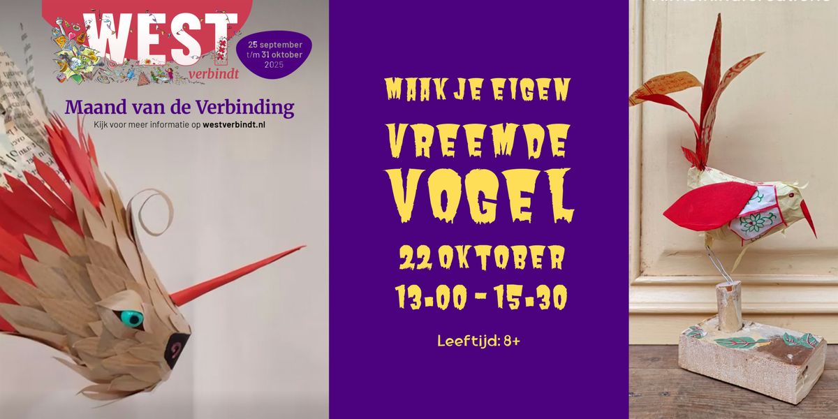 22 oktober – Ze zijn gek, ze zijn gevederd, ze zijn gerecycled – maak jouw Vreemde Vogel! Samen met kunstenaar Amerens Hedwich bouw je een vogel zoals je die nog nóóit in de lucht hebt