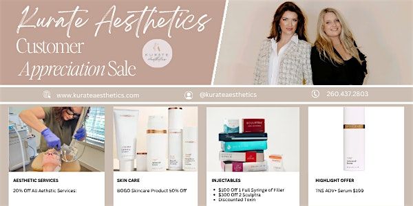 As we celebrate our Second Annual Customer Appreciation Sale, we want to take a moment to honor what truly makes Kurate Aesthetics special - you. Your trust, your loyalty, and the joy you bring into our space mean more that we can every fully express.