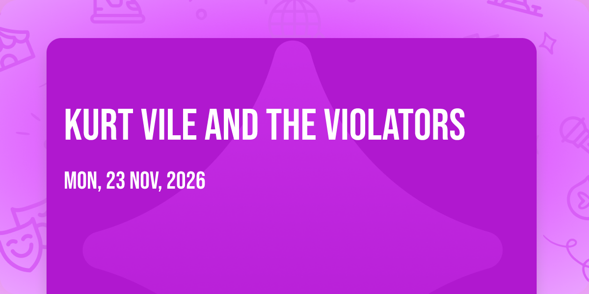π Location: 35.2474, -80.8041π Prepare to be amazed at Kurt Vile and the Violators, the most anticipated gathering of the season! π Set against the stunning backdrop of Neighborhood Theatre in vibrant Charlotte, NC, this event promises to redefine your expectations. π Mark your calendars for November 23rd, 2026 at 12:00 AM and get ready to immerse yourself in an atmosphere of wonder and excitement. β¨ From the moment you arrive, you'll be transported into a world where memories are made and stories come alive. They have crafted an experience that perfectly harmonizes entertainment, innovation, and community spirit. π Join us as we create moments that will be discussed for years!