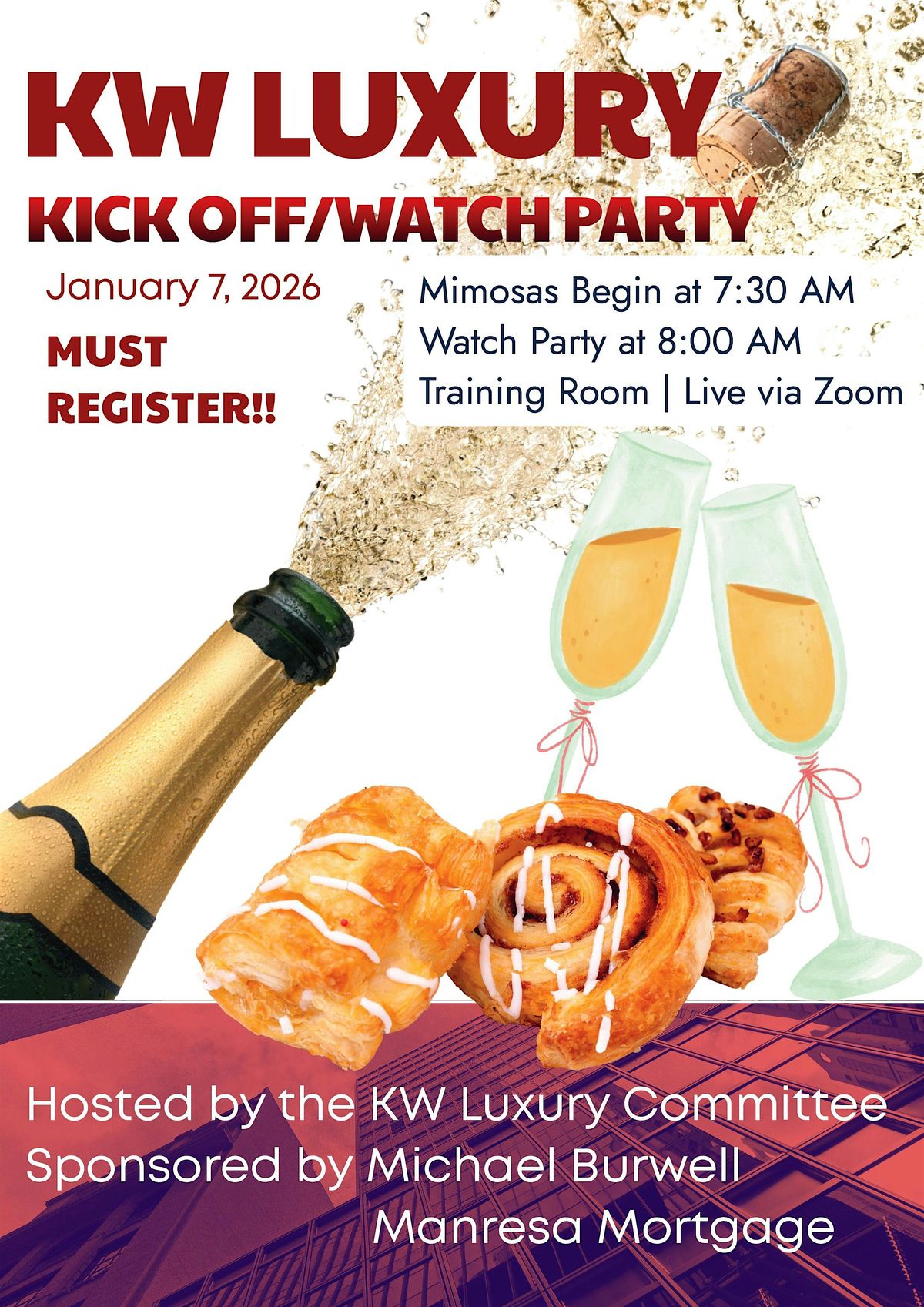 Join us for the KW Luxury Kick Off / Watch Party as we launch 2026 with energy, connection, and big vision! Whether you're already part of KW Luxury or aspiring to break into the high-end market, this is the perfect way to start the year surrounded by excellence.