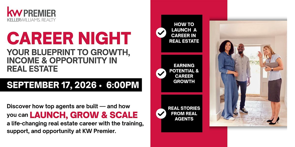 Are you considering a career in real estate β or looking for a brokerage that offers real growth and support? Join us for KW Premier Real Estate Career Night, a no-pressure, in-person informational session designed to give you a clear, honest look at what it takes to build a successful real estate career.