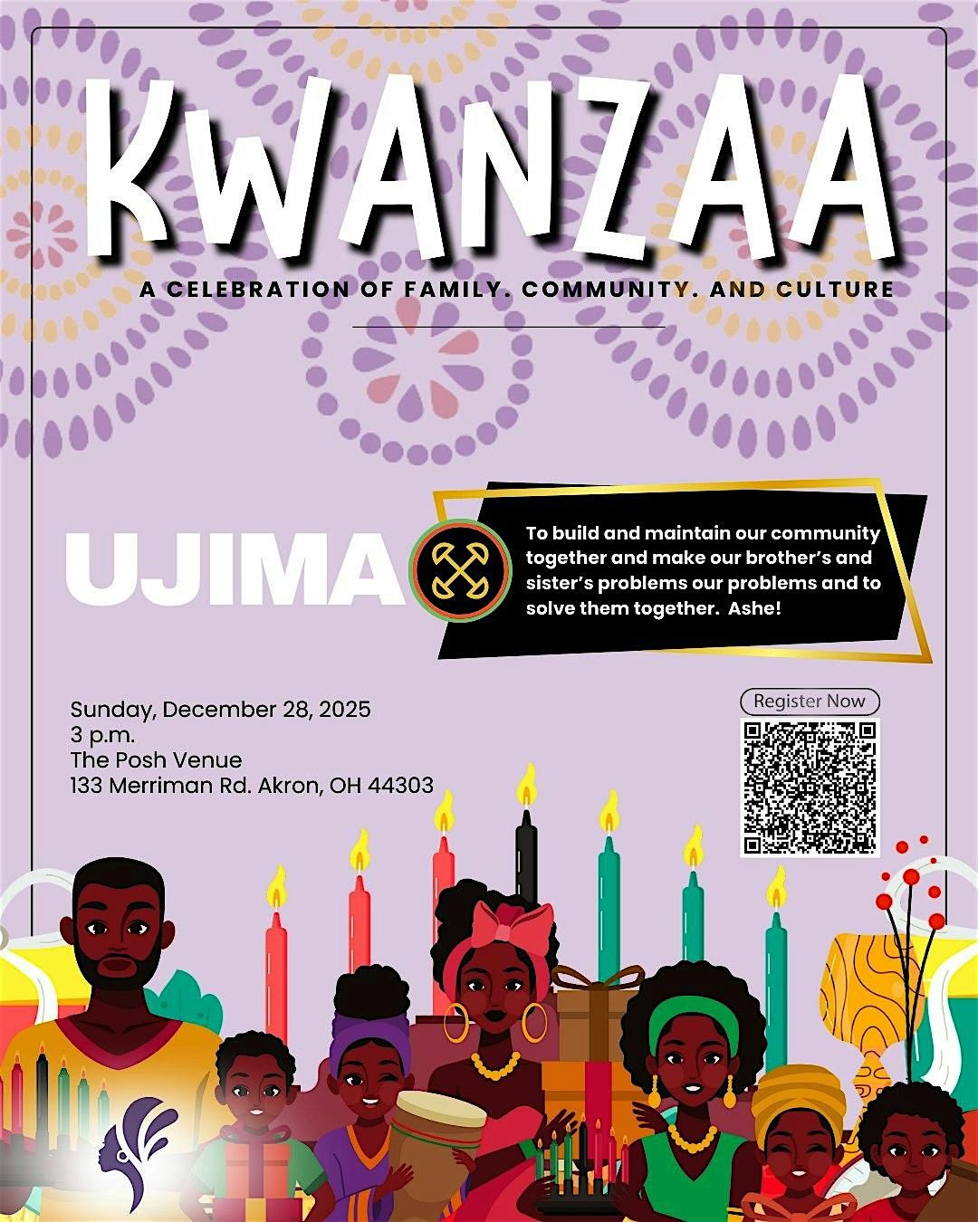 A Celebration of family, community & culture! Join us for the third night of Kwanzaa - UJIMA night! This event is FREE to the community.