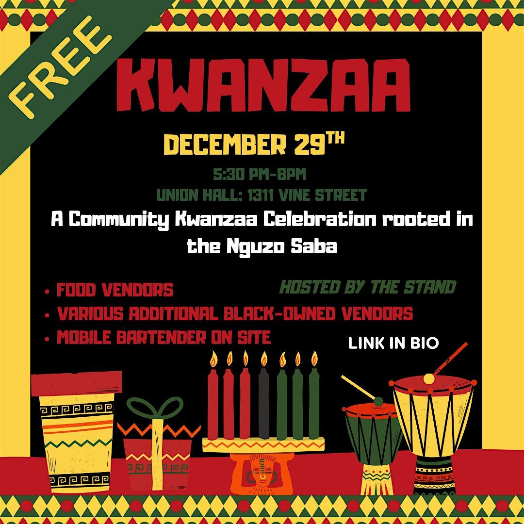 Free Kwanzaa community gathering with food vendors, shopping, and connection rooted in the Nguzo Saba.