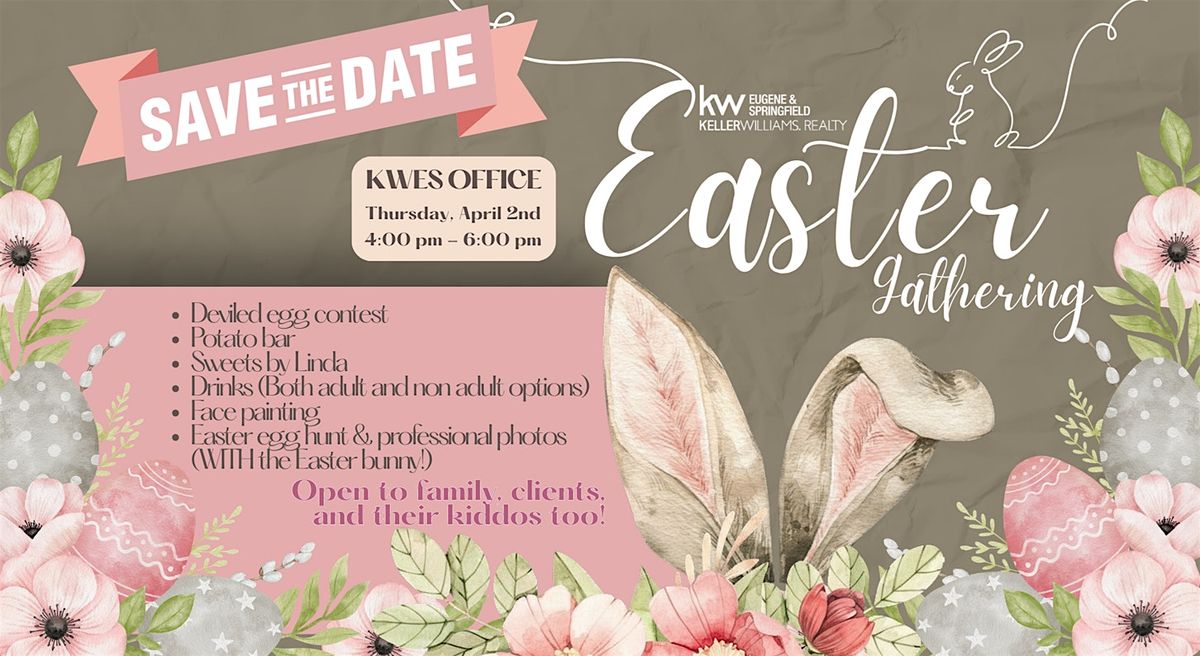 The KW Eugene & Springfield team is hosting an Easter Gathering, and you’re invited to a fun-filled afternoon of treats, activities, and community. Whether you're coming for the competitive deviled egg contest or just to snap a photo with the Easter Bunny, there’s something for everyone.