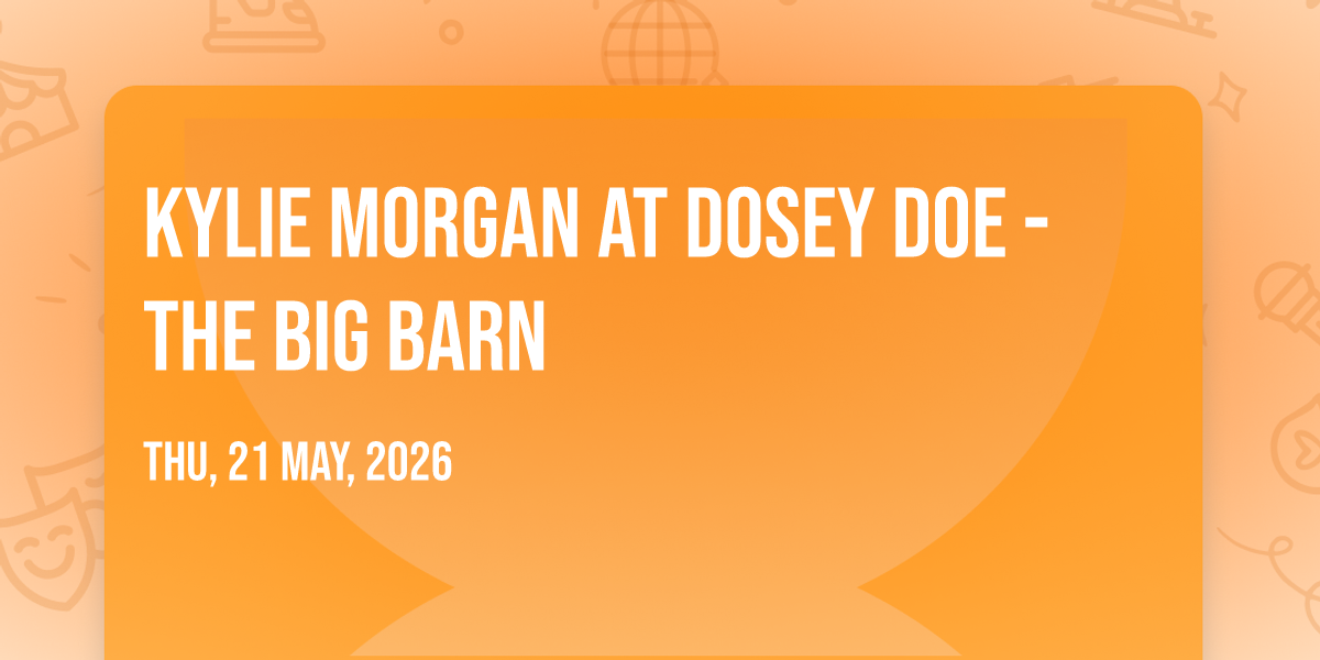 🌟 Be part of history at Kylie Morgan at Dosey Doe - The Big Barn, an extraordinary gathering that will captivate your imagination! 🏛️ The prestigious Dosey Doe - The Big Barn in Spring, TX sets the stage for an unforgettable experience on May 21st, 2026 at 08:30 PM. ✨ They are bringing together the finest elements of entertainment and innovation to create moments that will take your breath away. From the moment you arrive, you'll be immersed in an atmosphere of wonder and excitement. 🎯 This carefully planned event ensures every guest experiences something truly special. 🎊 Early booking is recommended for this must-attend event of the season!