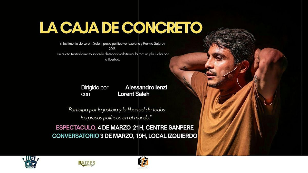 #LaCajaDeConcreto #LorentSaleh #AlessandroIenzi #Justicia #Libertad #Venezuela #PresosPolíticos #PremioSájarov #Raizes #BarcelonaArtAndRights #LocalIzquierdo