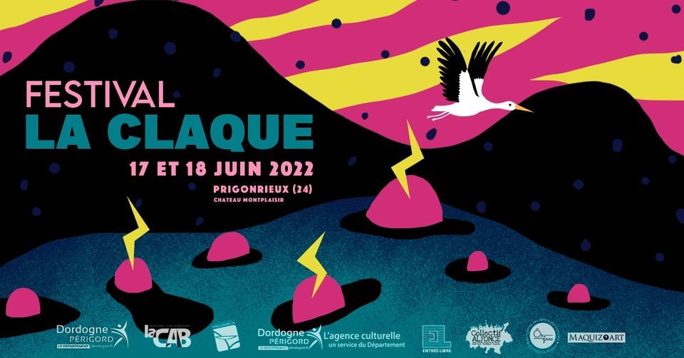 Merci à nos partenaires grâce au soutient desquels le Festival La Claque peut se permettre d'exister. La Ville de Prigonrieux - Le Conseil Départemental Dordogne Périgord - La CAB - L' Agence Culturelle Dordogne Périgord - Un grand merci aussi aux partenaires, l'association Printemps Ô Proche Orient (Festival Ôrizon) et l'association Maquiz'Art, qui participent à la programmation de cette belle édition 2022. Et big super merci, à tous les copains du Collectif Alfonce avec qui on continue et on continuera de se battre pour monter continuer à faire sortir de terre des projet comme celui-ci !