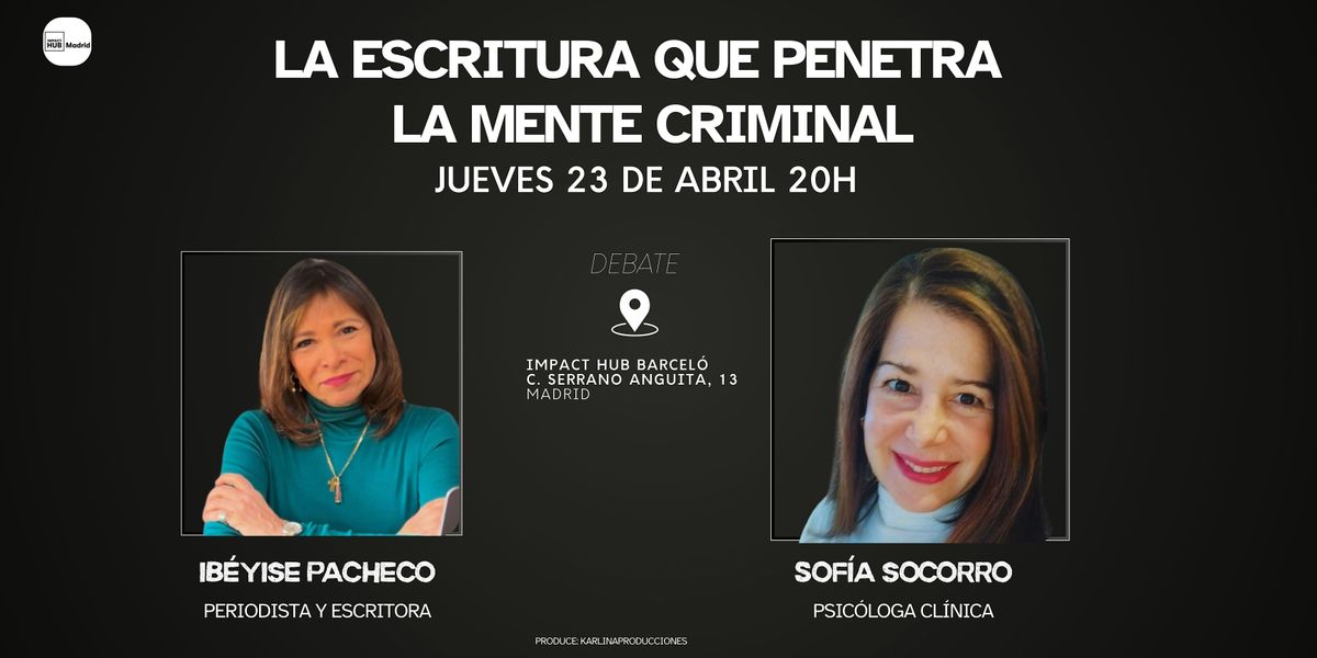 La reconocida periodista y escritora Ibéyise Pacheco y la psicóloga clínica Sofía Socorro debatirán en vivo sobre los vericuetos de la lietratura que narra e investiga sobre criminales, indagando desde una mirada psicologica, periodística y narrativa sobre las mentes perversas.