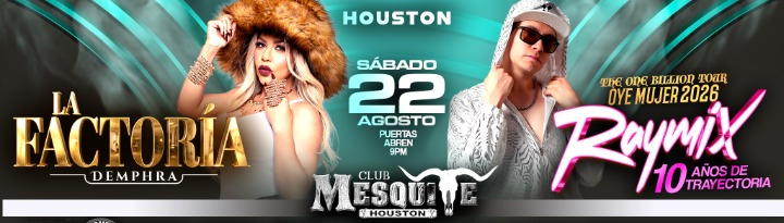 **Attend LA FACTORIA & RAYMIX EN HOUSTON at Club Mesquite, Houston, TX, United States** Join us for LA FACTORIA & RAYMIX EN HOUSTON. It's going to be a fun and relaxed event with great music and good company. A perfect way to spend your evening. **Event Details:** * **Location:** Club Mesquite, Houston, TX, United States Book your attendance today and be part of something extraordinary. #LAFACTORIA&RAYMIXENHOUSTON #event #exciting #HoustonEvents #TXEvents