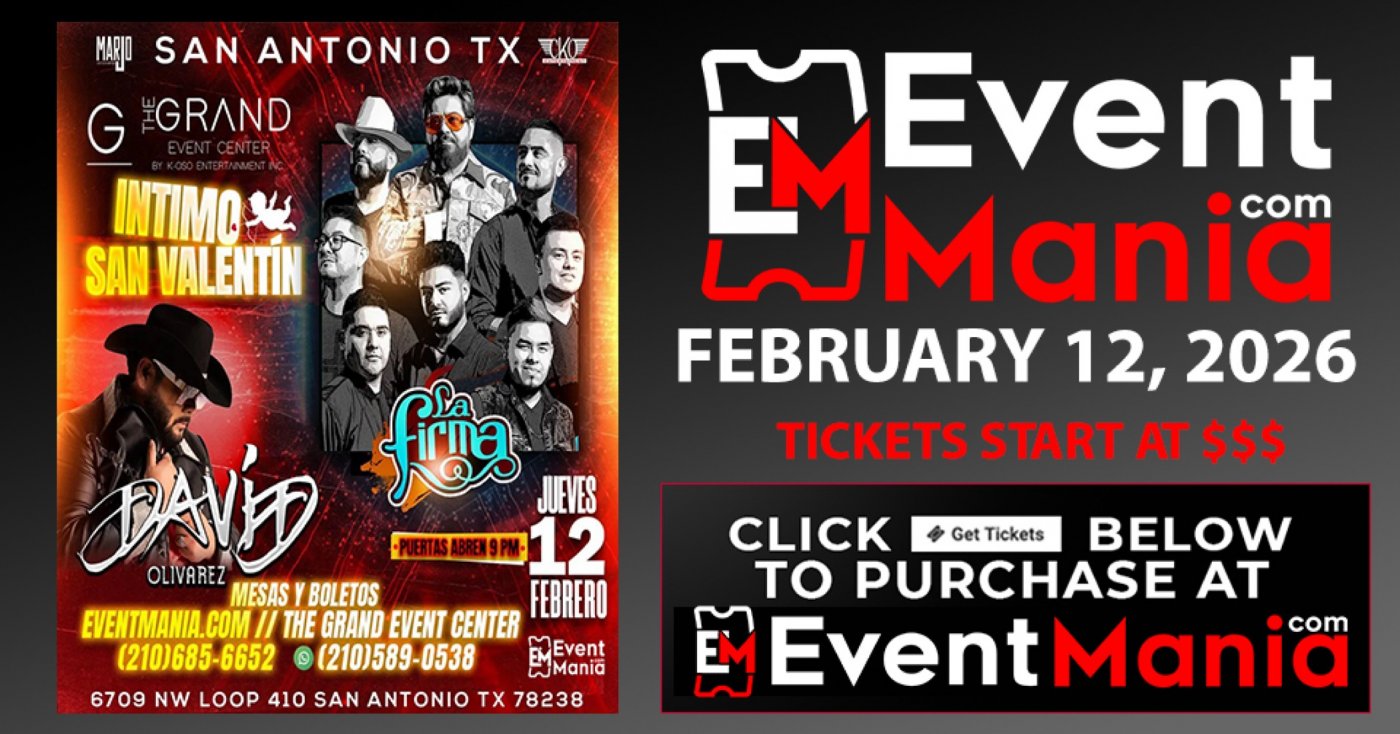 Compra tus boletos aqui: https://eventmania.com/events/la-firma-y-david-olivarez-san-antonio-tx-2026-02-12/vnwz/seat