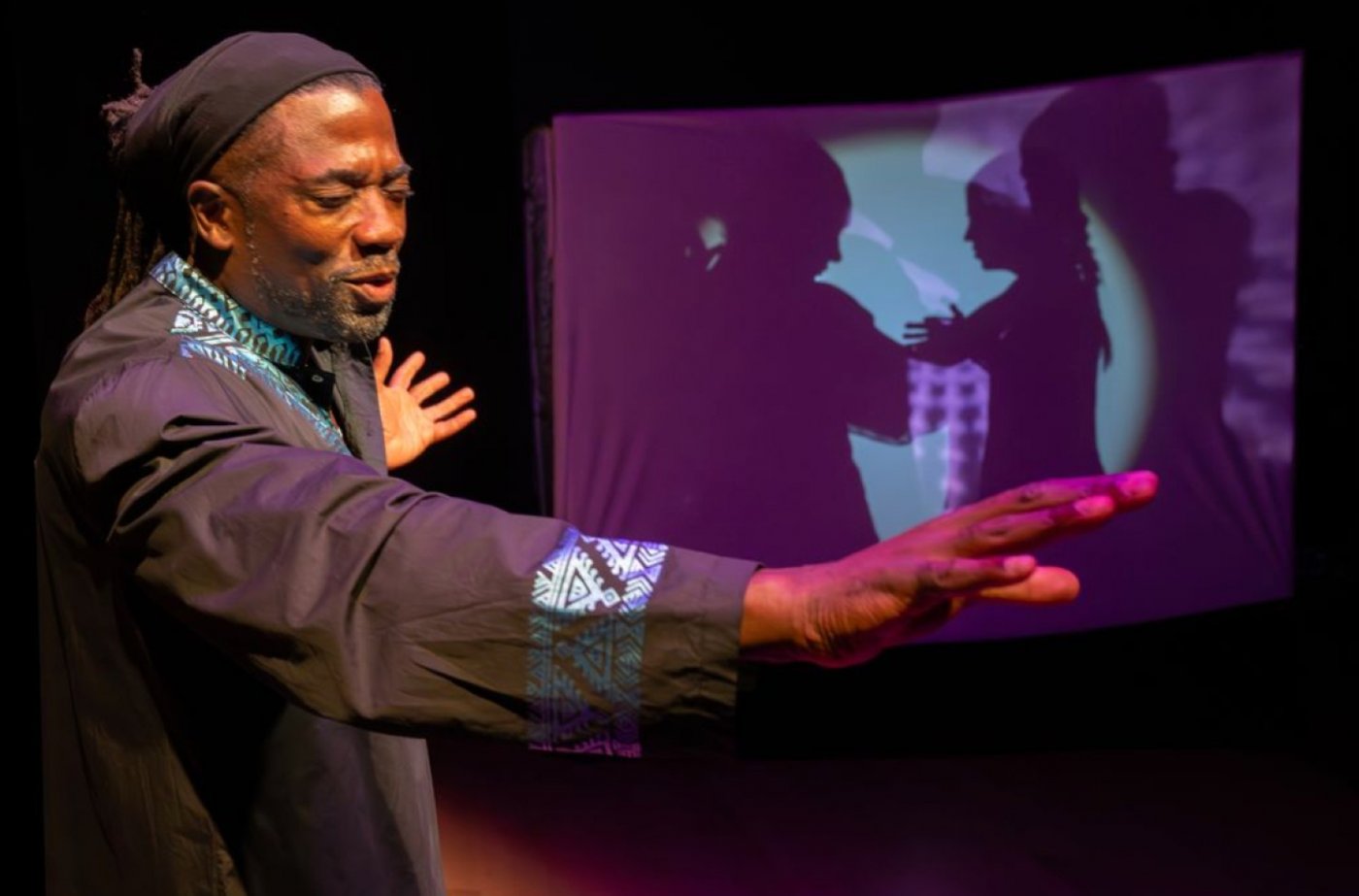 Told through live singing and original music, Mia M.I.A. pulses with energy and intimacy. Legendary griot and hip-hop artist Malik Work delivers electrifying live hip-hop numbers—written and performed for this Midnight Radio production—bringing ancestral storytelling traditions into bold conversation with futuristic soundscapes. The production’s innovative shadow puppetry, hand-cut silhouettes, and striking costume design conjure entire universes onstage, transforming the theatre into a living, breathing cosmos.