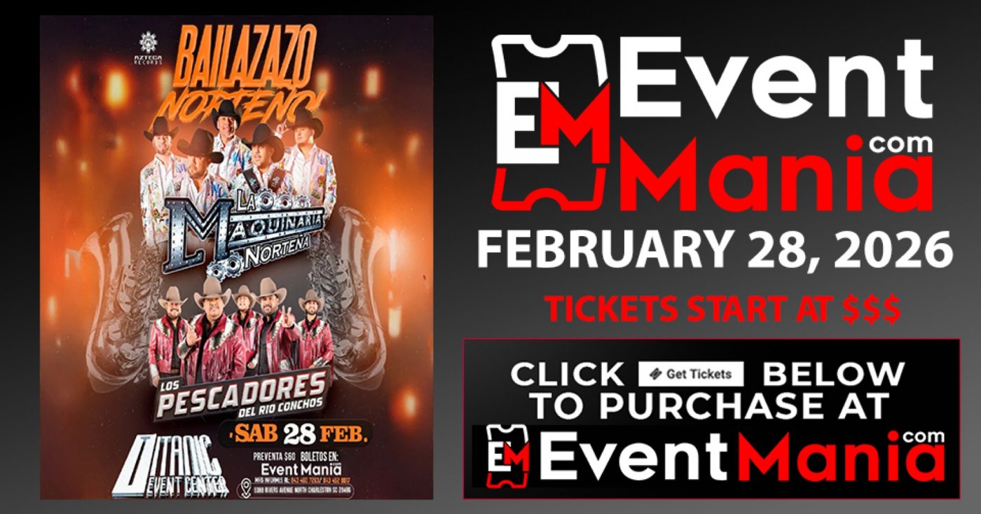 Compra tus boletos aqui: https://eventmania.com/events/la-maquinaria-nortena-y-mas-north-charleston-sc-2026-02-28/Z0e7/seat