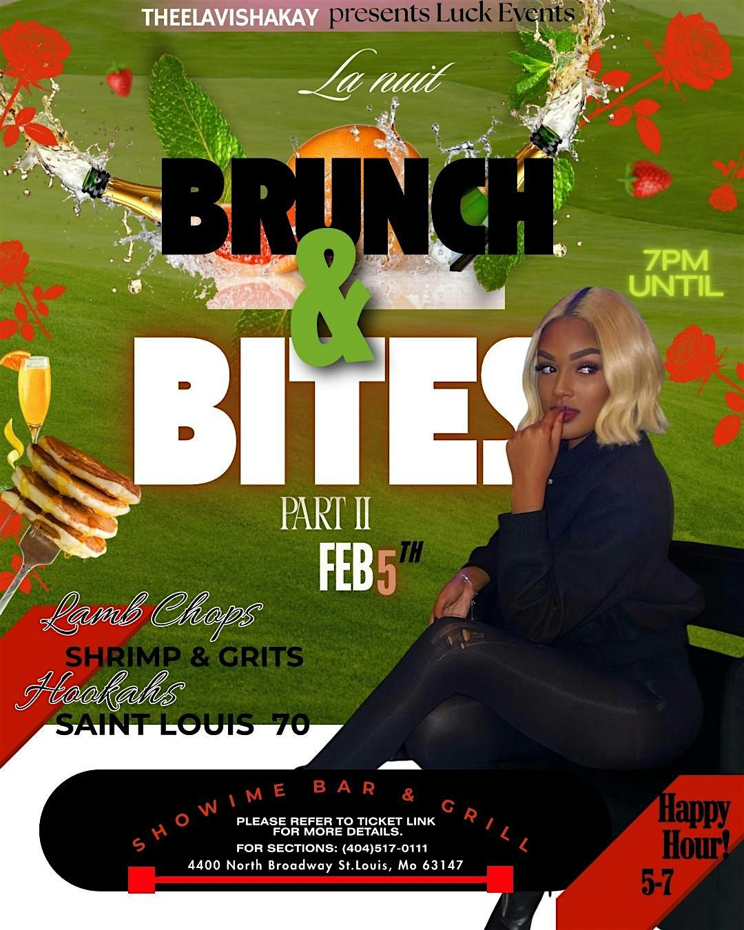 Come sip on bubbly or mimosas & savor chefs favorites like lamb chops and shrimp and grits , and unwind with premium hookahs brought to you by : (Akaylavish Luck) in an atmosphere designed for growth, stylish energy.