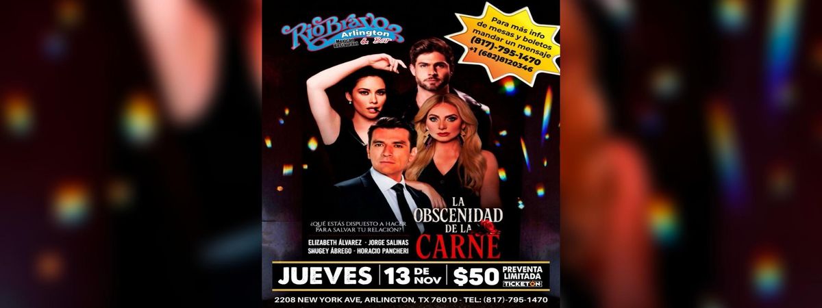 **Attend LA OBSCENIDAD DE LA CARNE at Rio Bravo Arlington, Arlington, TX, United States** Join us for LA OBSCENIDAD DE LA CARNE . It's going to be a fun and relaxed event with great music and good company. A perfect way to spend your evening. **Event Details:** * **Location:** Rio Bravo Arlington, Arlington, TX, United States Register now to secure your spot at this landmark event. #LAOBSCENIDADDELACARNE #event #exciting #ArlingtonEvents #TXEvents