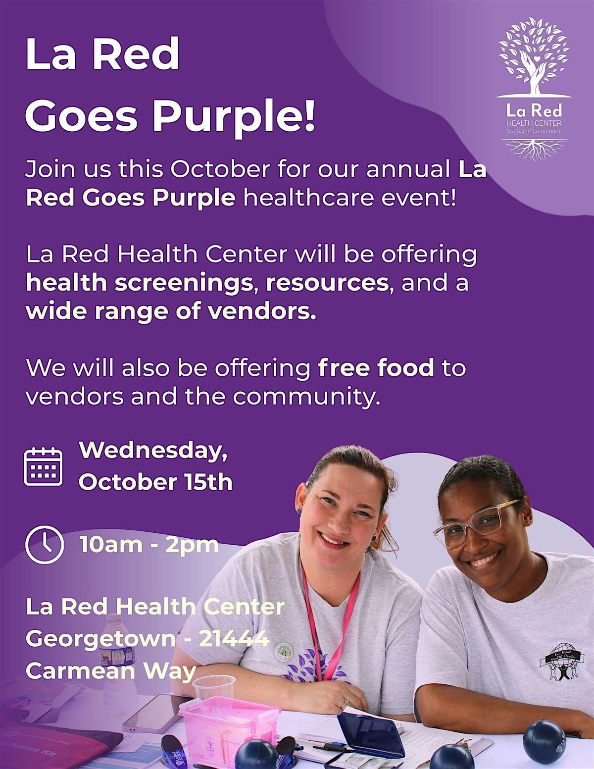 Join us Wednesday, October 15th for La Red Health Center's Annual 'La Red Goes Purple' event!