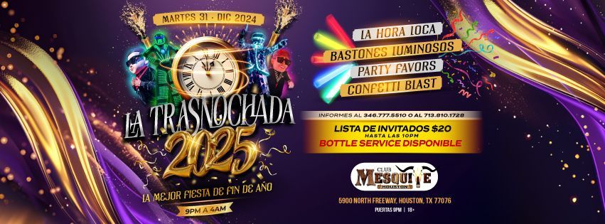 Don't miss LA TRASNOCHADA 2025 EN HOUSTON happening at Club Mesquite, Houston, TX, United States on 2025-12-31T22:00:00-06:00. A great evening with good music and a laid-back atmosphere awaits you. Invite your friends for a night out! **Event Details:** * **Location:** Club Mesquite, Houston, TX, United States Book your attendance today and be part of something extraordinary. #LATRASNOCHADA2025ENHOUSTON #event #exciting #HoustonEvents #TXEvents
