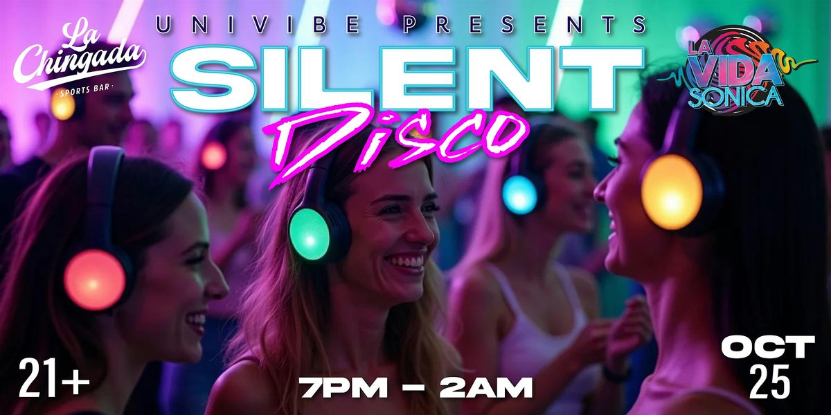Join us at La Chingada Sports Bar for an unforgettable evening of music and fun. Put on your headphones and choose your favorite tunes as DJ's battle it out to keep you grooving all night long. House, Latin, Afro-beats, Hip-Hop and even electronic tracks, we got your vibe! Invite your friends for an unforgetable night! There's something for everyone at this epic silent disco event. Tickets are moving fast - feel the beat, don't miss your chance to be part of it!