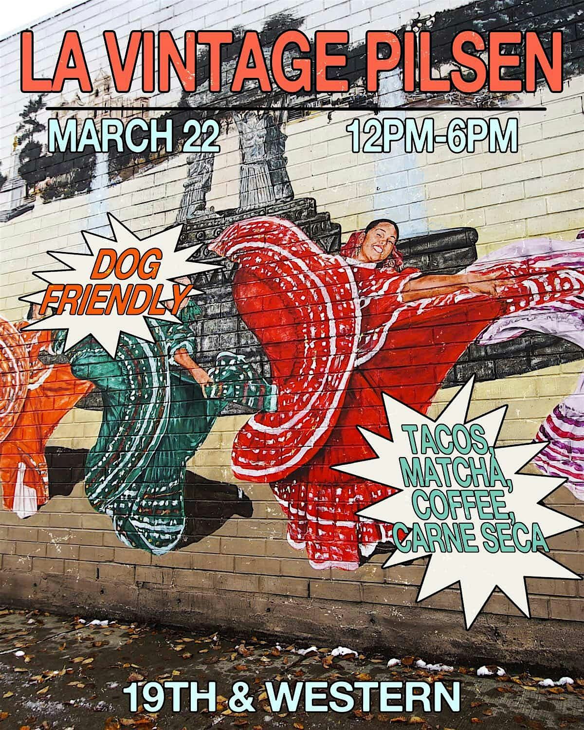 La Vintage Pilsen Market event will be held on Sunday March 22nd 2026, from 12pm-6pm. We will be hosting a vintage/artisan goods/ local vendors event with an estimate of about 60 vendors on 19th Street and Western Ave. You will not miss us! We are right on the busy street! Each vendor will have an oppurtunity to showcase their findings, network, and most importantly sell their inventory to the public. As well as advertise their small business to a large cultural Pilsen community! You are invited! Come check us out and on Instagram at La Vintage Pilsen! Thank you and see you soon!
