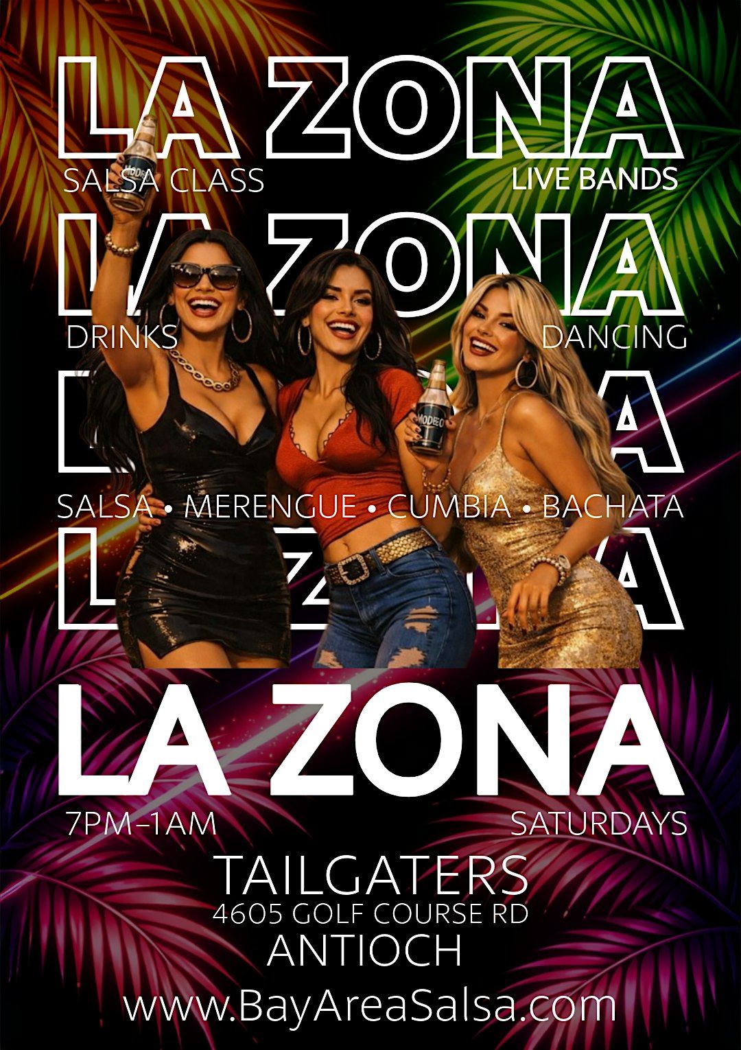 Prepárate para la mejor fiesta semanal de salsa en el East Bay. La Zona Saturdays te invita a disfrutar una noche llena de ritmo, baile y buena energía con orquesta de salsa en vivo y DJ todos los sábados en Tailgaters.
