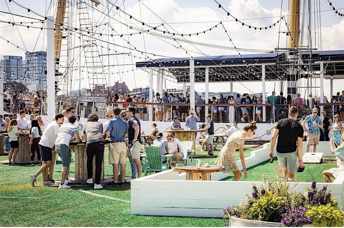 Prepare to enter a world of elegance and opulence as we celebrate in style on Labor Day weekend at the magnificent Tall Ship in Boston. As you step onto the pristine white carpet, you'll be welcomed to capture the moment against our stunning backdrop, surrounded by breathtaking waterfront views and the grandeur of the 240-foot tall ship vessel.