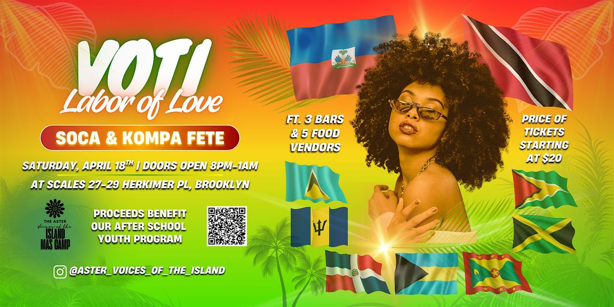 Voices of the Island (VOTI) presents an unforgettable cultural fête celebrating the rhythms of the Caribbean. From high-energy Soca anthems to the smooth, sensual vibes of Kompa, this experience blends music, dance, and community into one electric night in Brooklyn.