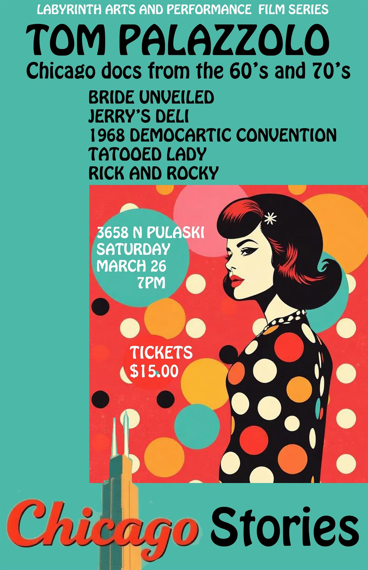Join us for a glimpse into Chicago's past --films include Tattooed Lady, Jerry's Deli, Ricky and Rocky, 68 Convention, Bride Unveiled